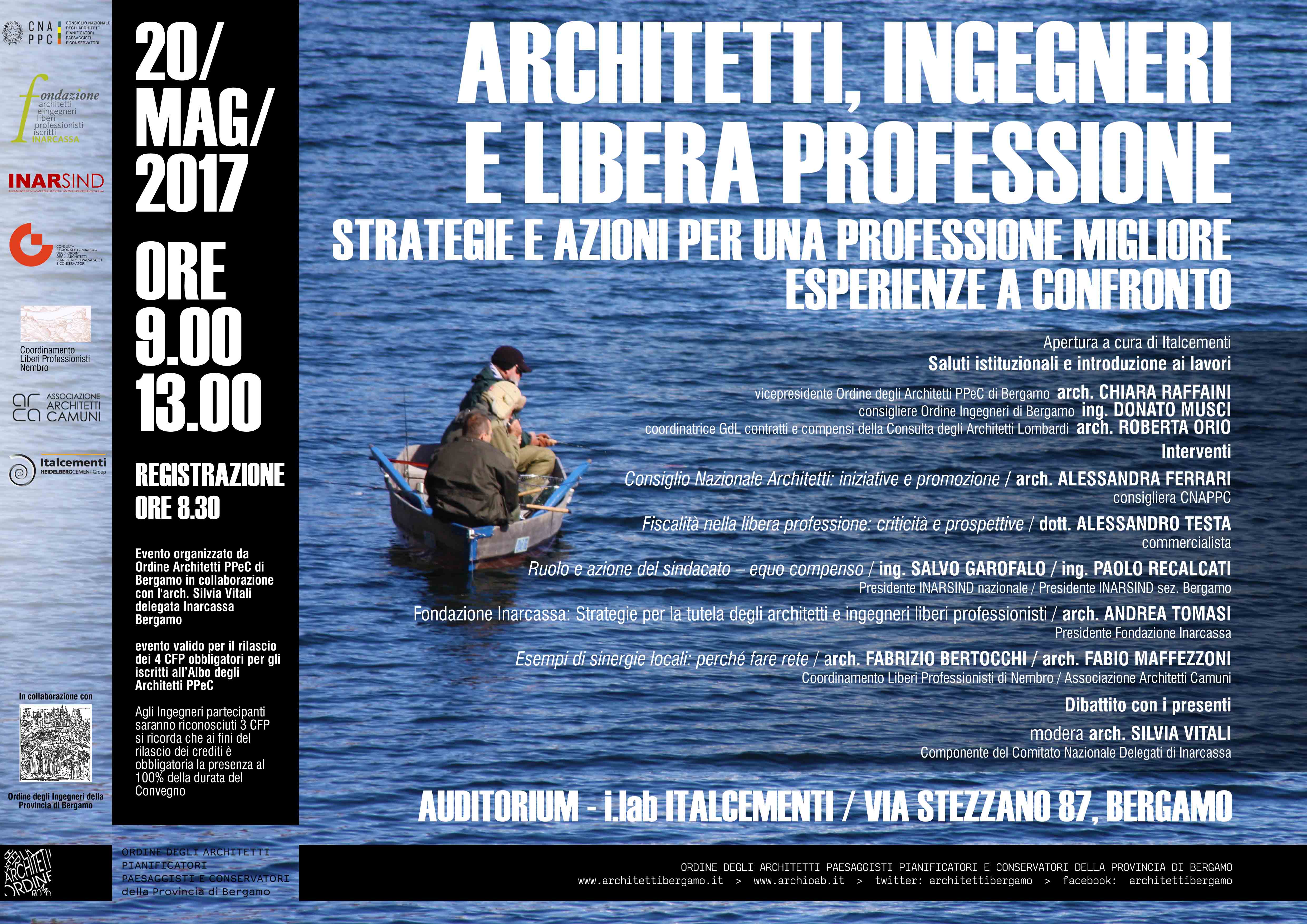 L'Ordine degli Architetti PPC della Provincia di Bergamo, in collaborazione con l'arch. Silvia Vitali delegata Inarcassa organizza il seminario "ARCHITETTI, INGEGNERI E LIBERA PROFESSIONE Strategie e azioni per una professione migliore – Esperienze a confronto".