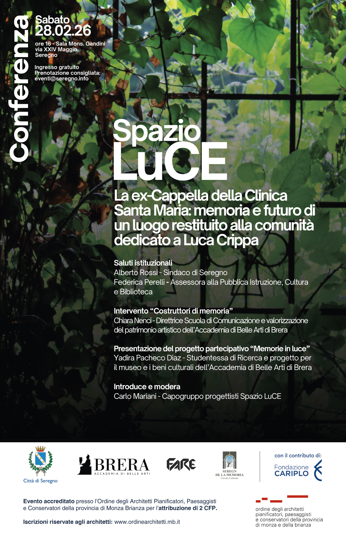 La ex Cappella della Clinica Santa Maria: memoria a futuro di un luogo restituito alla comunità dedicato a Luca Crippa